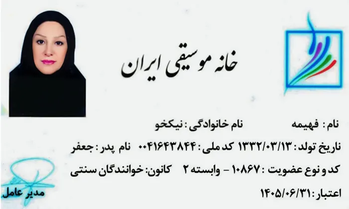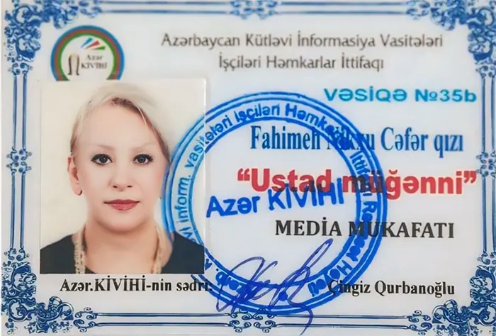 کارت صلاحیت تدریس از آکادمی موسیقی کشور آذربایجان